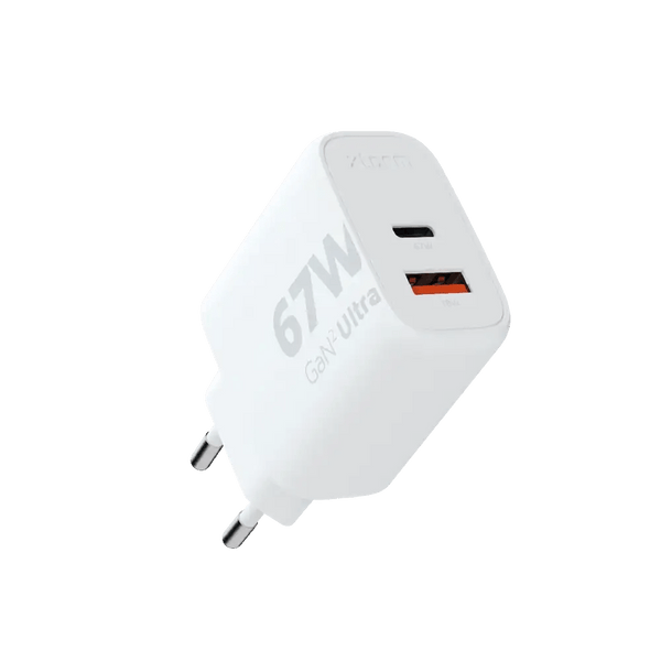 onze 67W GaN² Ultra-adapter perfect voor onderweg, op kantoor of thuis. De aanwezigheid van USB-C en USB-A poorten zorgt voor compatibiliteit met een breed scala aan apparaten. De USB-C poort zorgt voor snel opladen van de